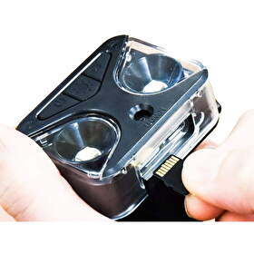 microSDカードを本体にセットし、撮影ボタンを押すと録画開始(マイク内蔵)。