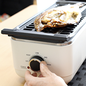 煙を出さずに、卓上で焼肉や焼き魚を楽しめる無煙ロースター『肉と魚のWグリル S-SLG21W』。
